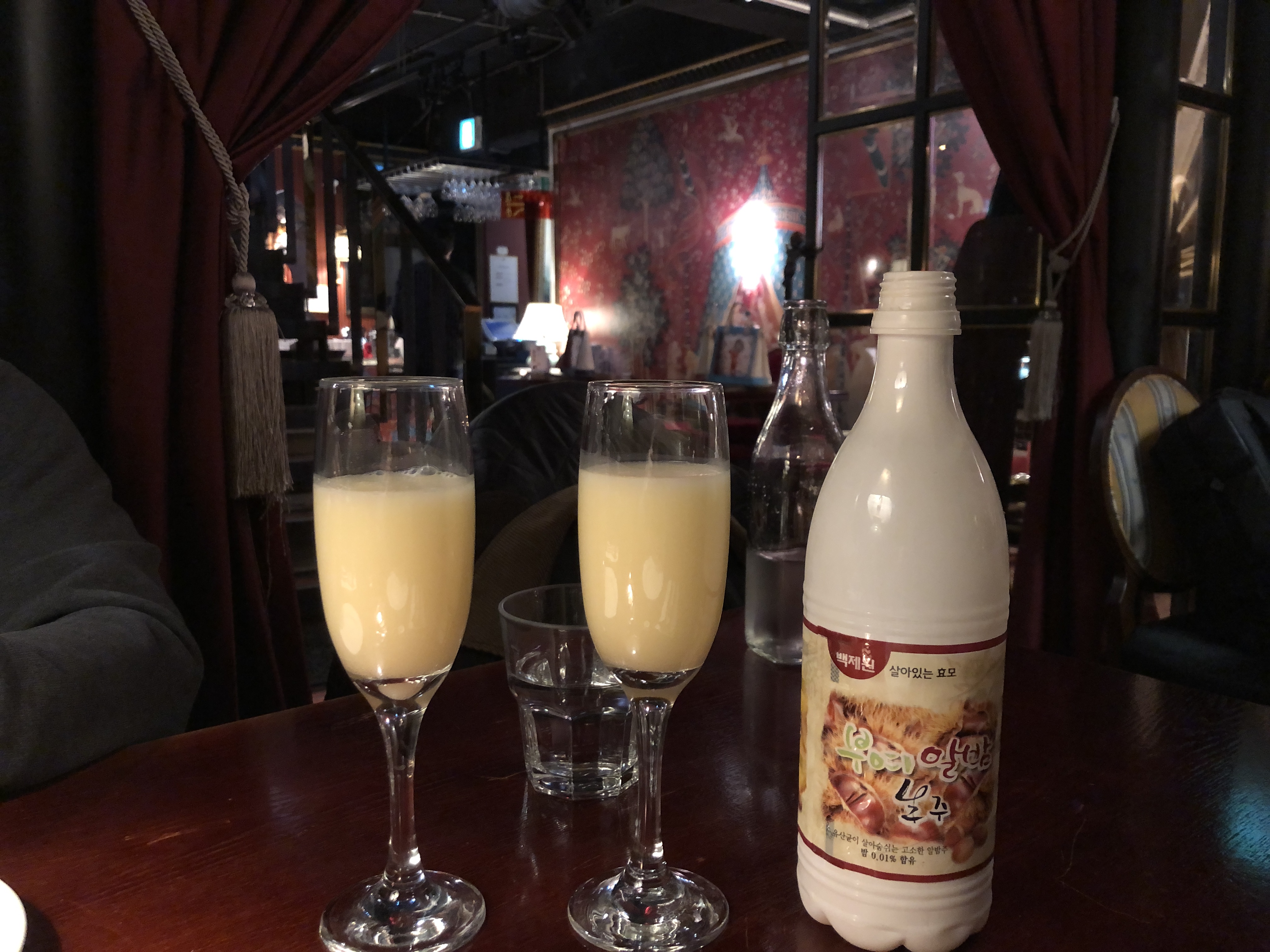 샴페인 잔에 막걸리를 마시니 새로운 느낌이었어요