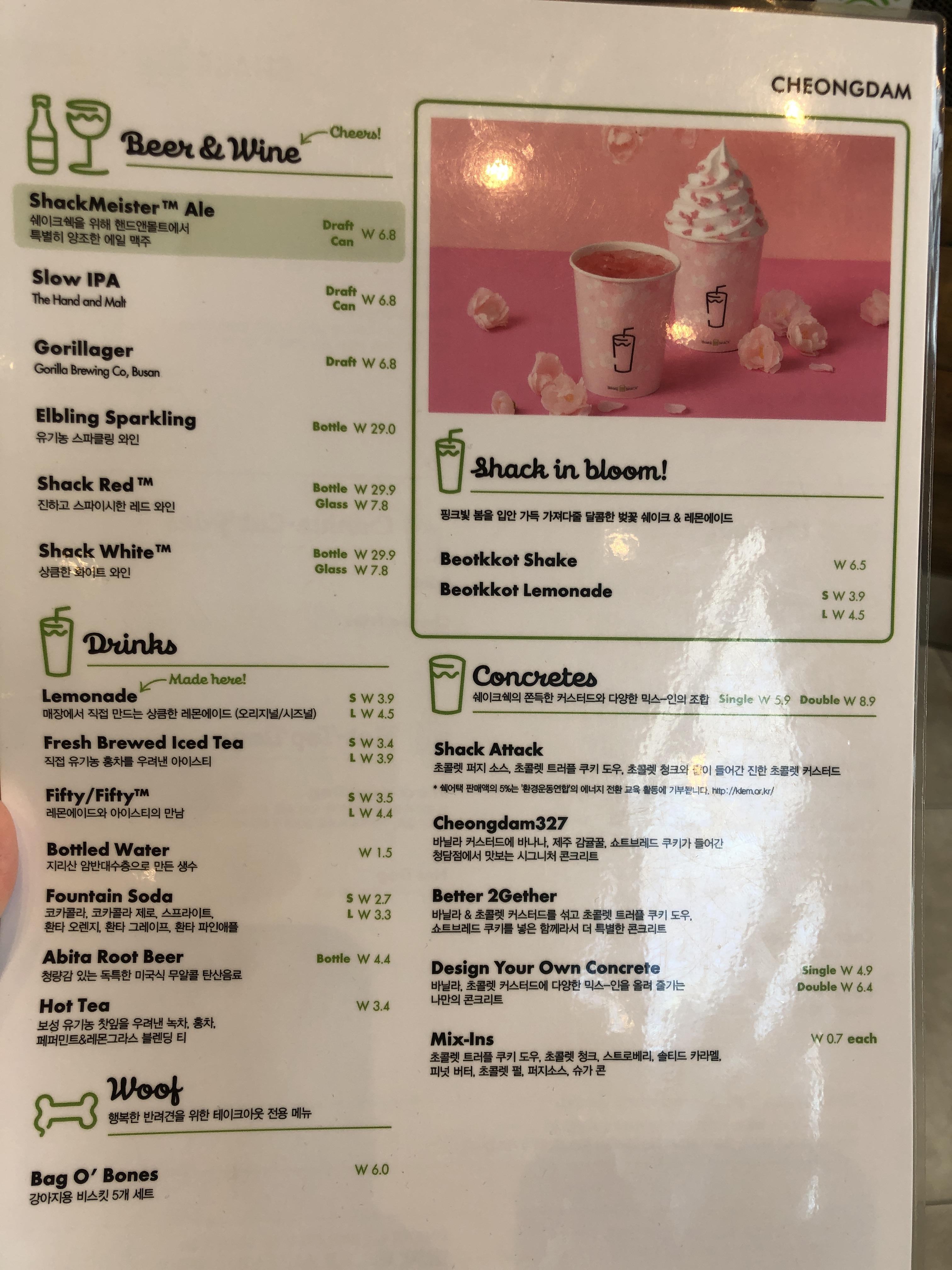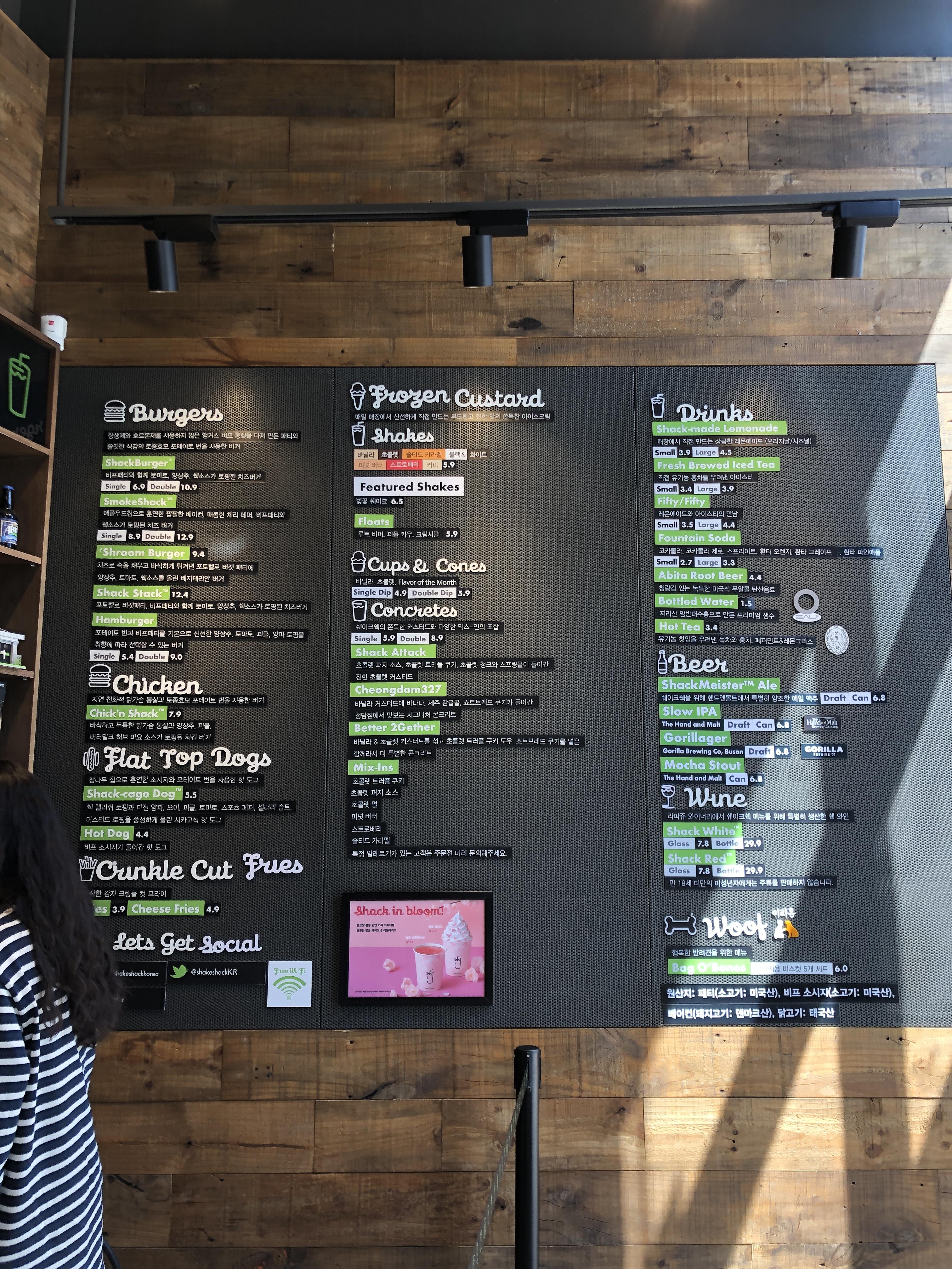 [쉑쉑 버거 메뉴]