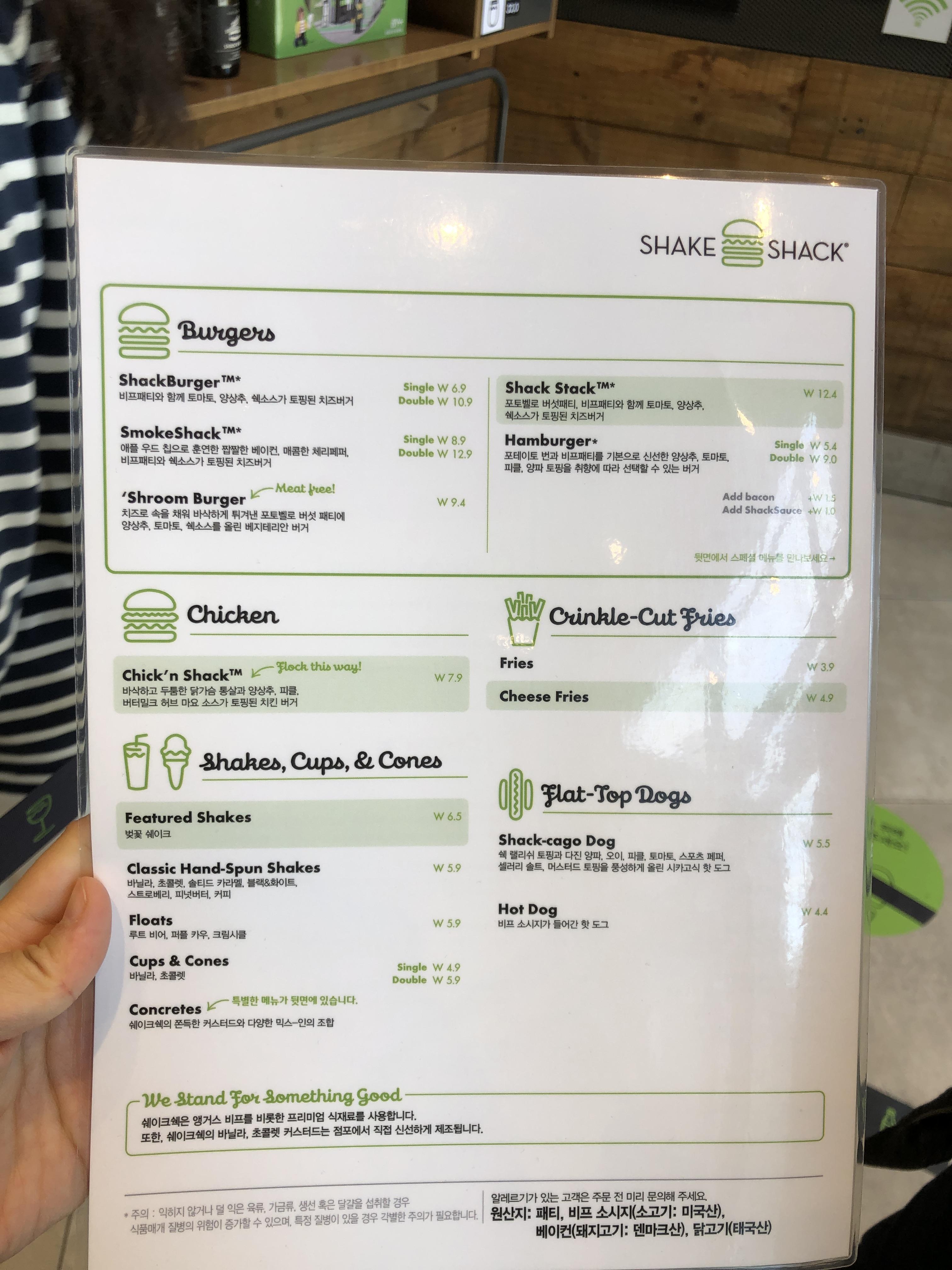 항상 쉑쉑버거 가면 기본 버거만 먹었는데 오늘은 다른 버거를 먹어보고 싶어서 고민하다가